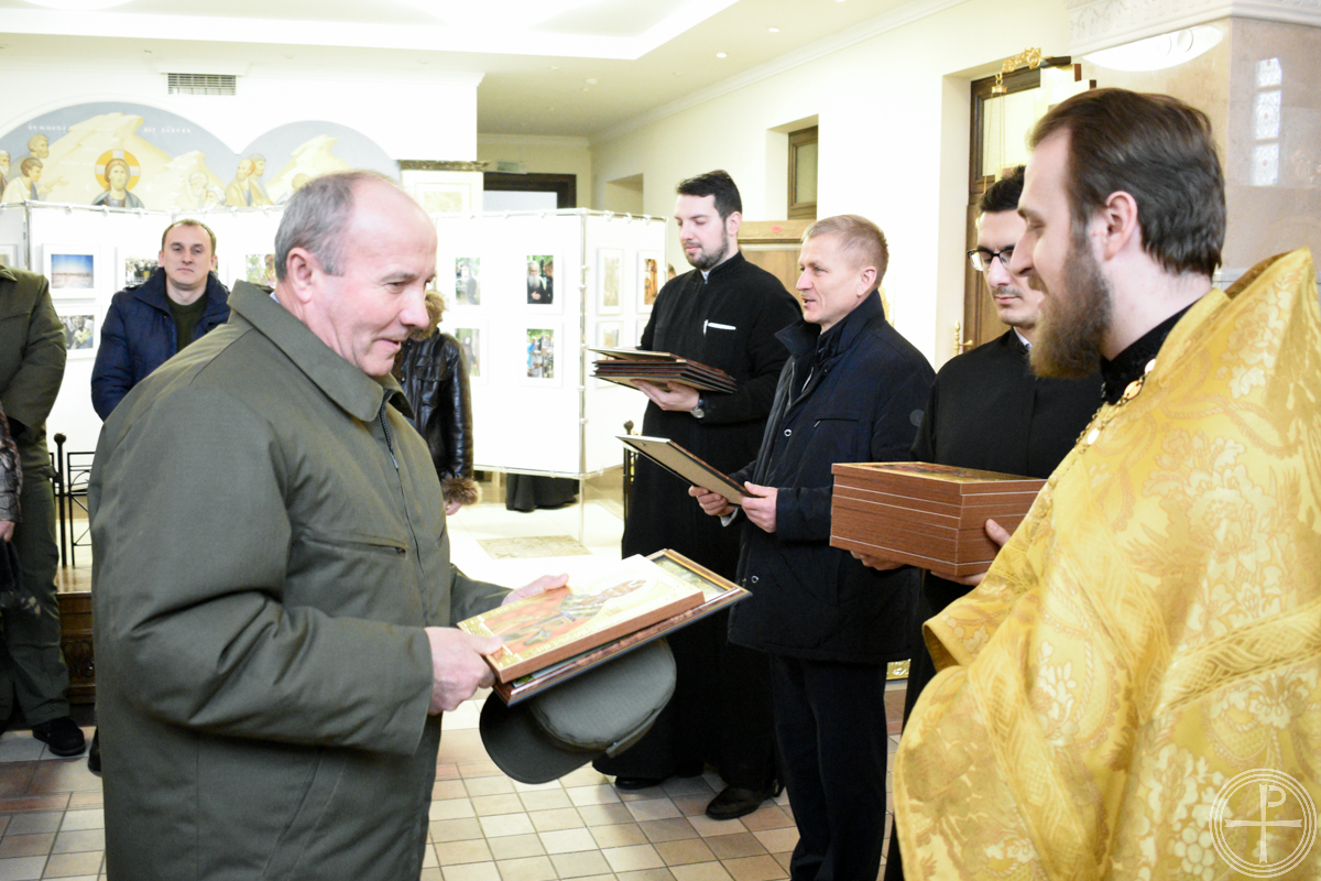 14 февраля 2019 года Православная Церковь отмечает память мученика св. Трифона, который по народной традиции считается покровителем охотников и рыболовов. Почтить память святого в Академическом храме святителя Кирилла Туровского Минской духовной академии Белорусской Православной Церкви со своими семьями собрались представители и друзья Республиканского государственно-общественного объединения «Белорусское общество охотников и рыболовов» и общественного объединения «Охотничий клуб «Сафари»». Празднование открылось торжественным молебном мученику Трифону Апамейскому, который возглавил первый проректор Минской духовной академии, настоятель храма Кирилла Туровского в городе Минске протоиерей Владимир Долгополов. По окончании молебна отец Владимир обратился к собравшимся со словом назидания. Первый проректор отметил, что обращаясь к нашим небесным покровителям, мы обращаемся к Богу и просим их ходатайства перед Ним о заступничестве в нашей жизни. Далее с приветственным словом к духовенству и собравшимся выступил председатель Республиканского совета РГОО «БООР» Шумский Юрий Иванович. Юрий Иванович сердечно поблагодарил администрацию Академии за возможность проведения данного мероприятия и выразил мысль о том, что празднование дня памяти мученика Трифона приобретает общереспубликанский масштаб. Затем председатель РГОО «БООР» вручил памятные грамоты особо потрудившимся в деятельности общественного объединения, а первый проректор Минской духовной академии протоиерей Владимир Долгополов вручил на молитвенную память иконы святителя Кирилла Туровского. Всем собравшимся в память о мероприятии были подарены изображения Жировичской иконы Божией Матери. По окончании приветственных слов для всех собравшихся мужской хор учащихся Минской духовной академии исполнили небольшой концерт. В конце всем было провозглашено многолетие. Далее для гостей была проведена экскурсия по комплексу зданий Минской духовной академии. Участники торжества посетили библиотеку Минской духовной академии, где ознакомились с изданиями МинДА, а также редкими старинными книгами. Затем гости проследовали в Церковно-исторический музей Белорусской Православной Церкви, где им были представлены различные экспонаты, в том числе предметы церковной утвари 17-18 века, церковные облачения, а также мемориальная комната митрополита Филарета, почетного Патриаршего Экзарха всея Беларуси. По окончании экскурсии состоялся праздничный фуршет, где участники мероприятия могли тепло пообщаться в непринужденной обстановке.