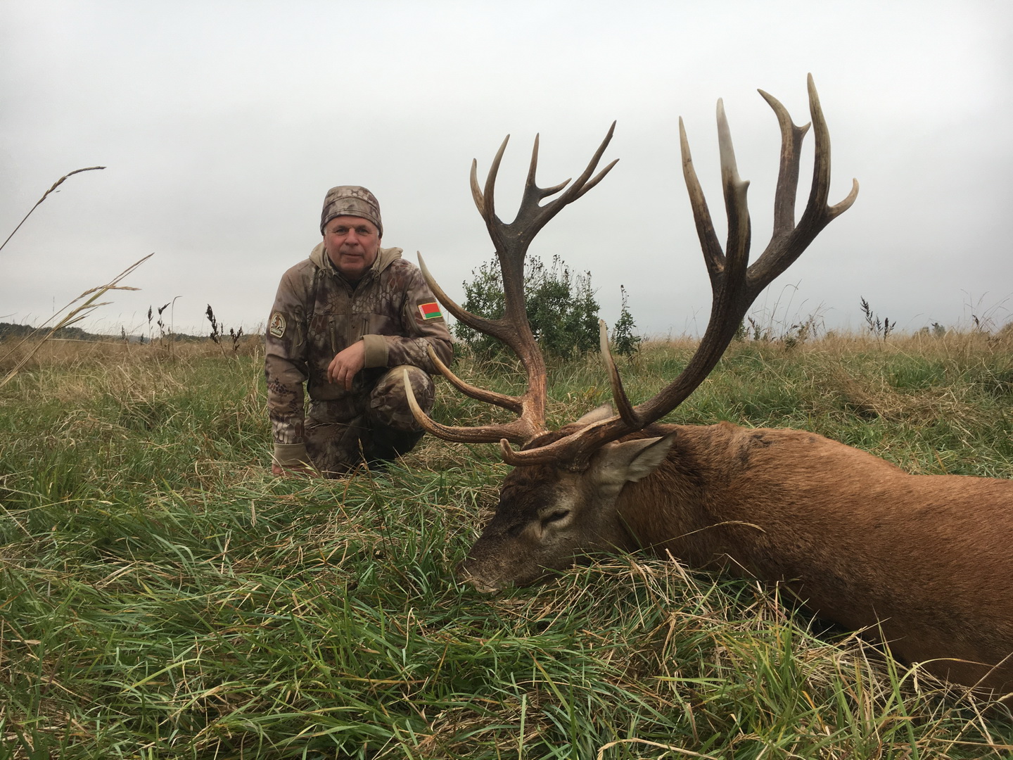 Совершаем очередной манёвр. Луг рельефный, на левом его фланге ферма, вперёд и вправо он переходит в болото. За 600 метров впереди вижу и слышу оленя и начинаю скрадывать его. Постоянно «трубя» зверь спокойно смещается в сторону болота, и мне при этом удаётся сократить дистанцию до 350 метров, при которой кроме широко раскидистых и достаточно высоких рог других деталей трофея понять не могу. На краю болота олень забрался в кустарник. Наша «перекличка» особого эффекта кроме раздражения выражаемого активным масланием оленем кустов рогами не имела до той поры пока в метрах 600 дальше по краю болота не отозвался ещё один рогач и мой подопечный по кустарнику стал смещаться в его сторону.
