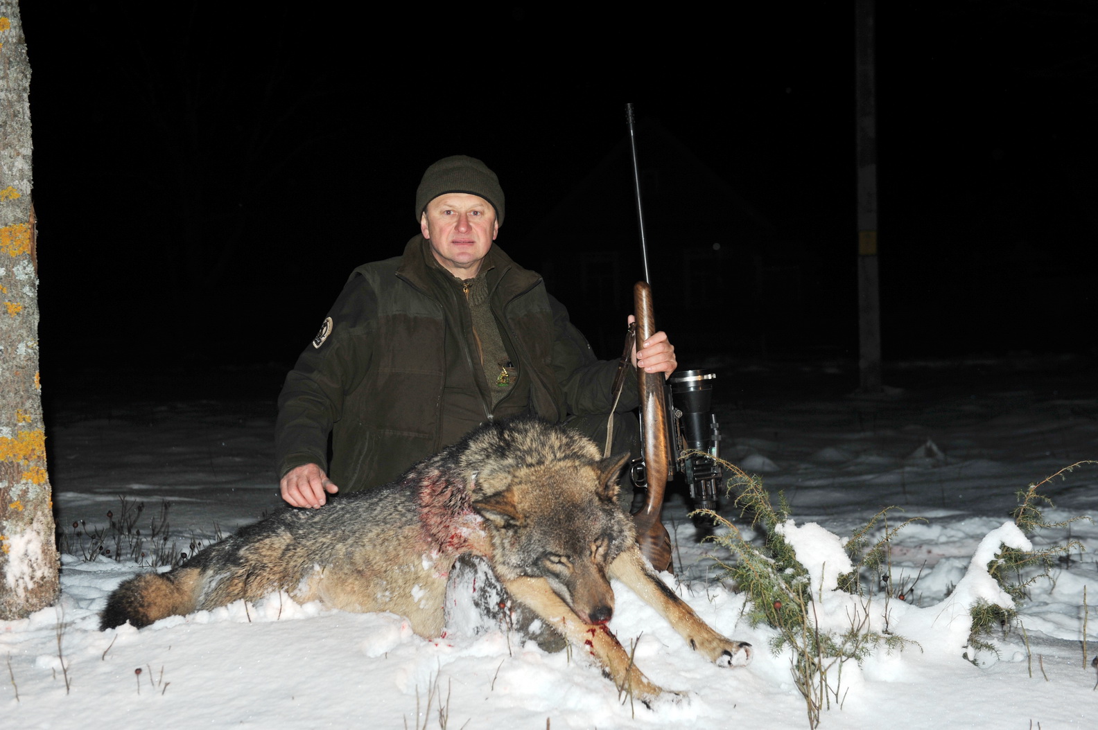 Переезжаем в район угодий, где по словам егеря живут два волка. На лесной дороге замечаем свежие следы двойки, идущие нам навстречу. Разворачиваемся и быстро выскакиваем на поле около близлежащей деревни. Занимаем позицию в двухстах метрах от кромки леса. Через 10 минут после первой вабы, даю возможность отдохнуть глазу от яркого света тепловизора. В этот момент тишину содрогает звук выстрела. Стреляет сосед.