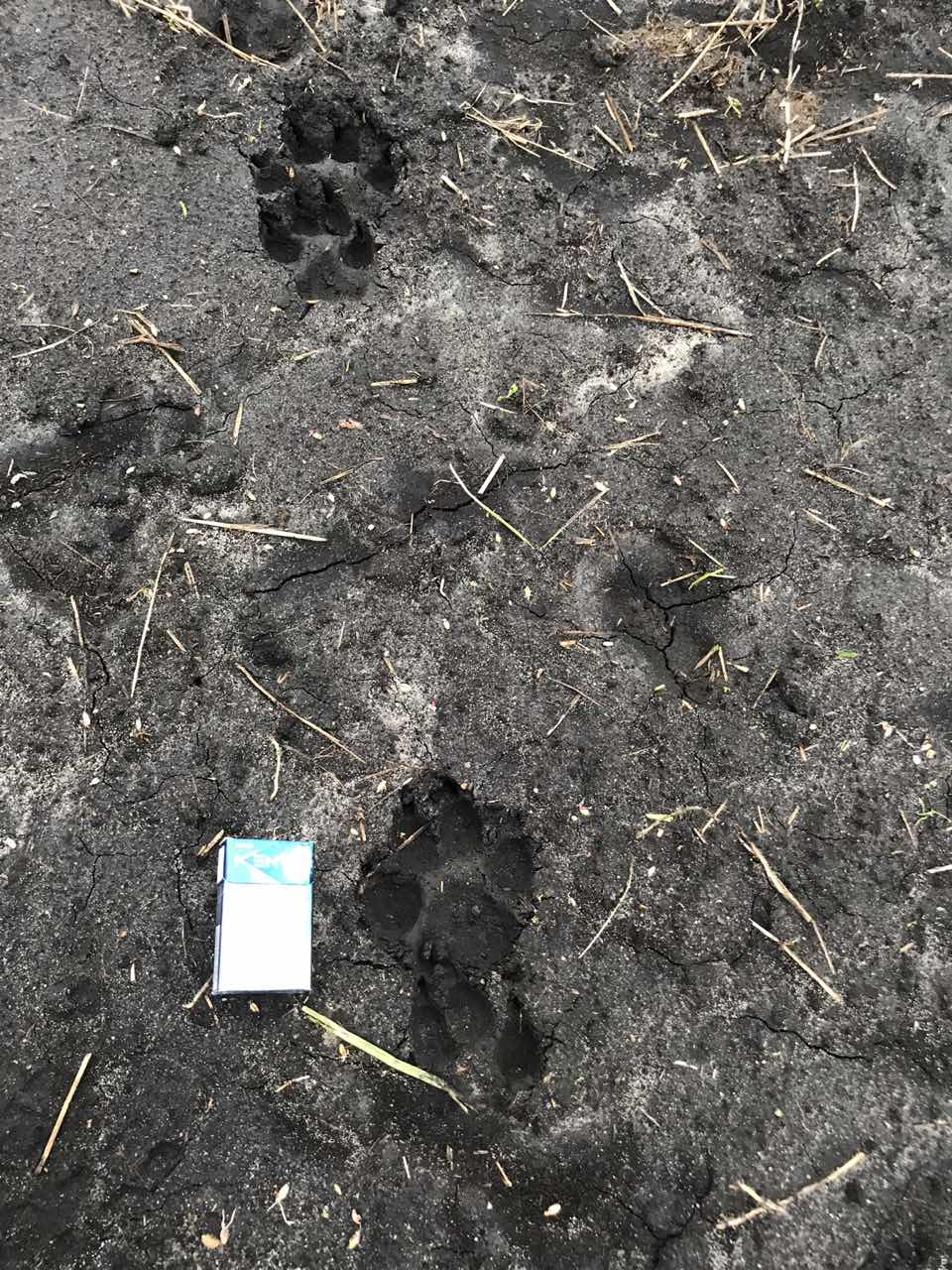 На следующее утро увидел следы волка. На точку вабы, приходил второй волк.