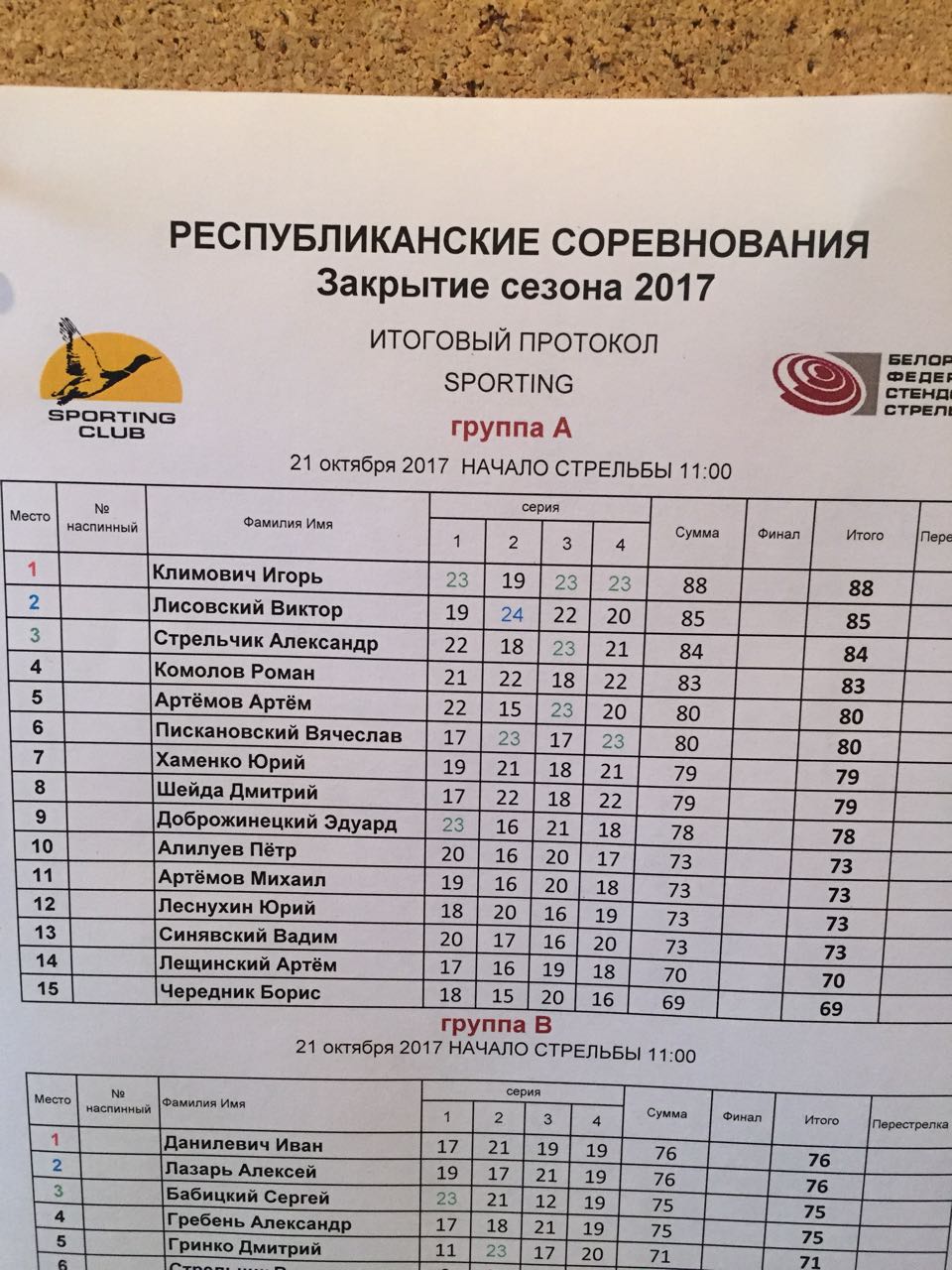 Поздравляем с победой!Главная-Новости-Поздравляем с победой!Наш одноклубник Игорь Климович стал победителем в Республиканских соревнованиях «Закрытие сезона» по Sporting в группе А (среди сильнейших). Поздравляем Игоря с трудовой победой и желаем покорения новых рубежей!