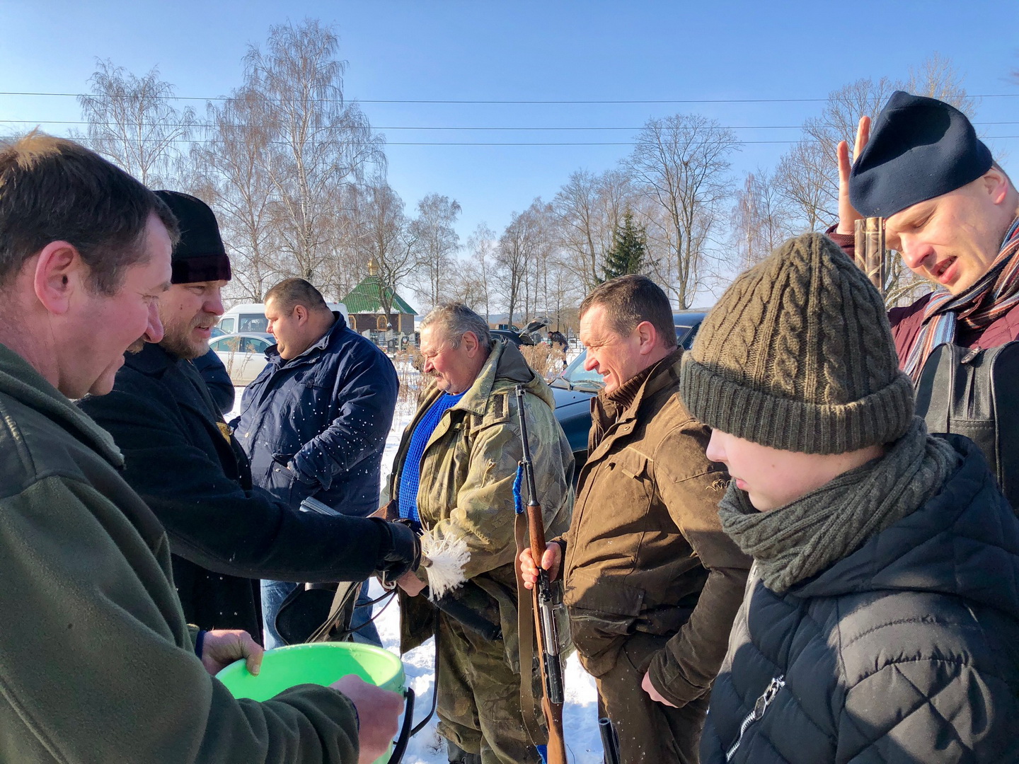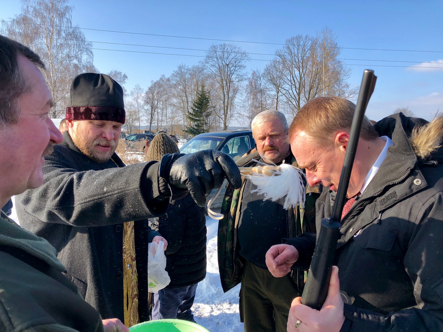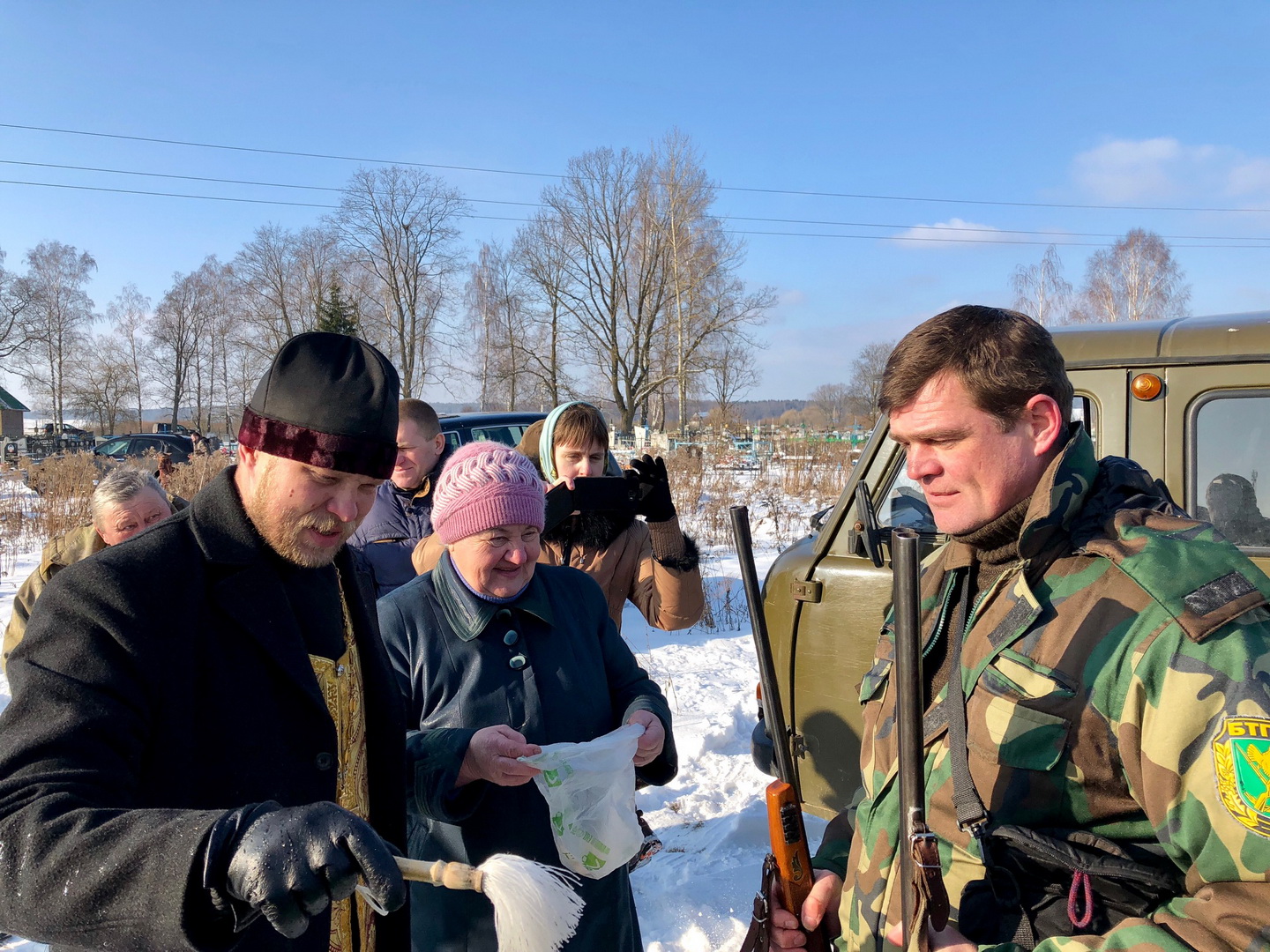 По окончании службы состоялось освещение охотничьего оружия и автомобилей.