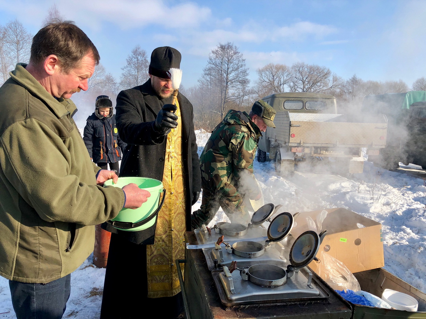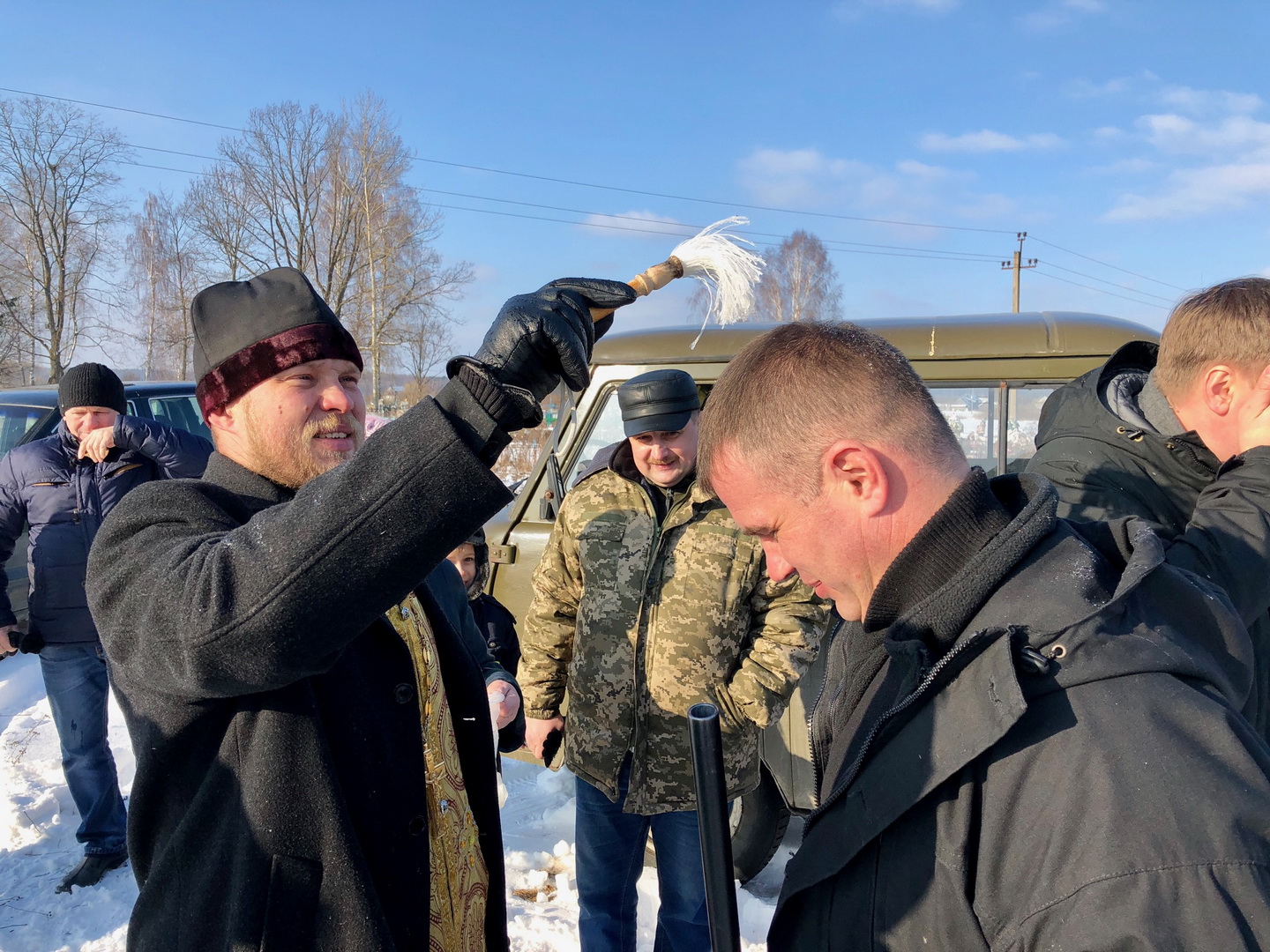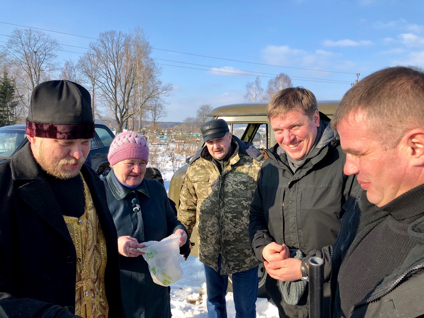 По окончании службы состоялось освещение охотничьего оружия и автомобилей.