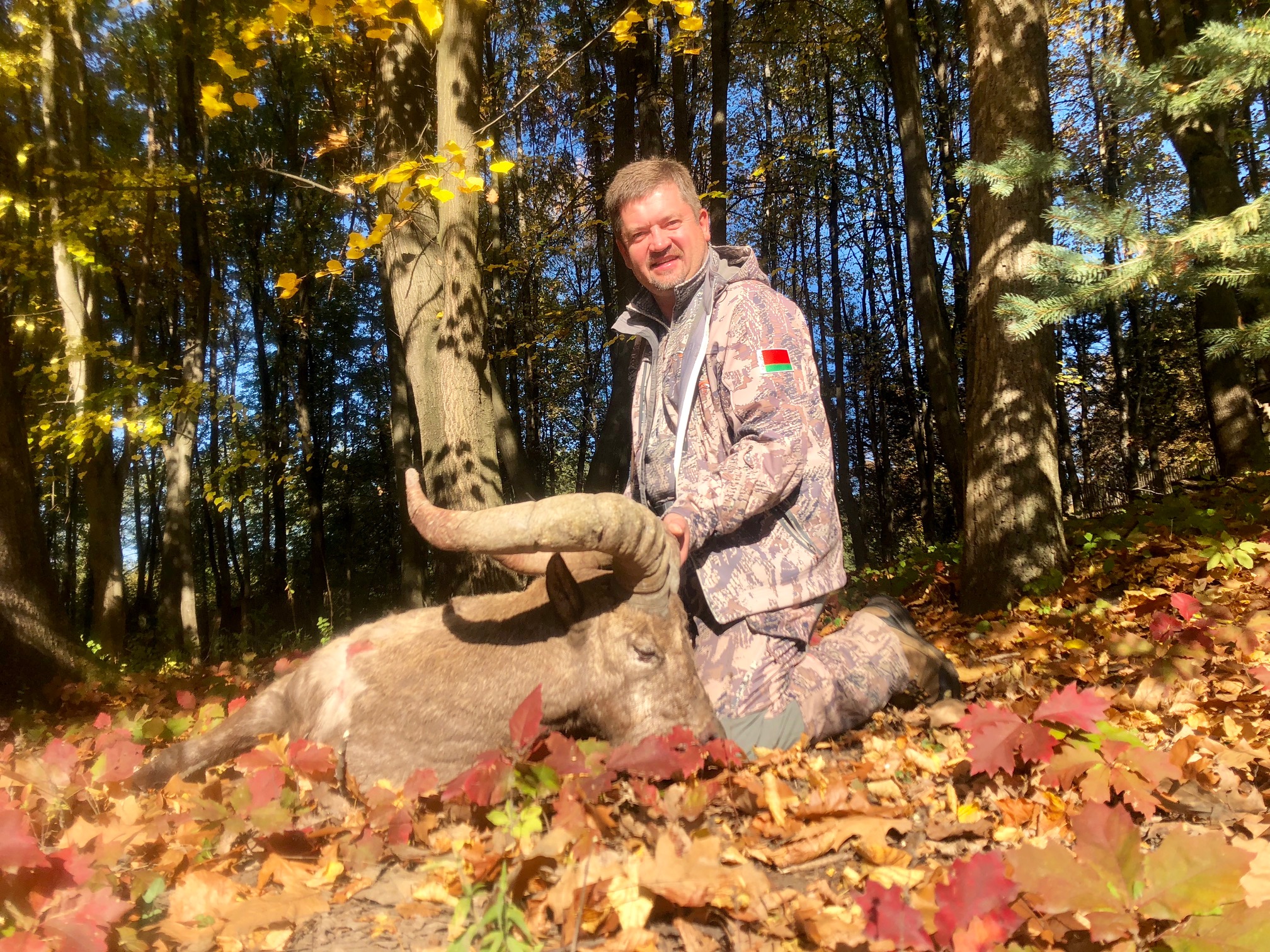 Минут через двадцать слышим по рации: — Есть кровь. Уже хорошо! Или плохо?! Мы начинаем двигаться вверх, а старший егерь идёт по следам. Вышли на 3.100 нум. За 4 часа преодолели один километр по вертикали. Следы с кровью есть, а зверя нет. Решаем пообедать, и потом делать добор подранка. Солнце печёт. Надо мазаться кремом, иначе можно обгореть. А дальше были долгие поиски. По пути обнаружили стадо самок. Они то и выдали, где находится нашей трофей, постоянно смотря в его сторону. Гена забрался на скалы, где и обнаружил раннего зверя. От бессилия он сорвался со скалы и метров 50 пролетел вниз. Трофей добыт! Тяжело, но взят!
